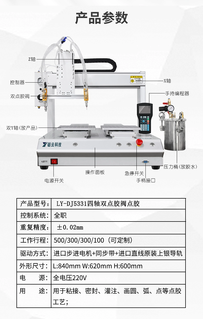 1、砺云LY-DJ331针筒点胶机,高效率自动点胶,精美点胶工艺
